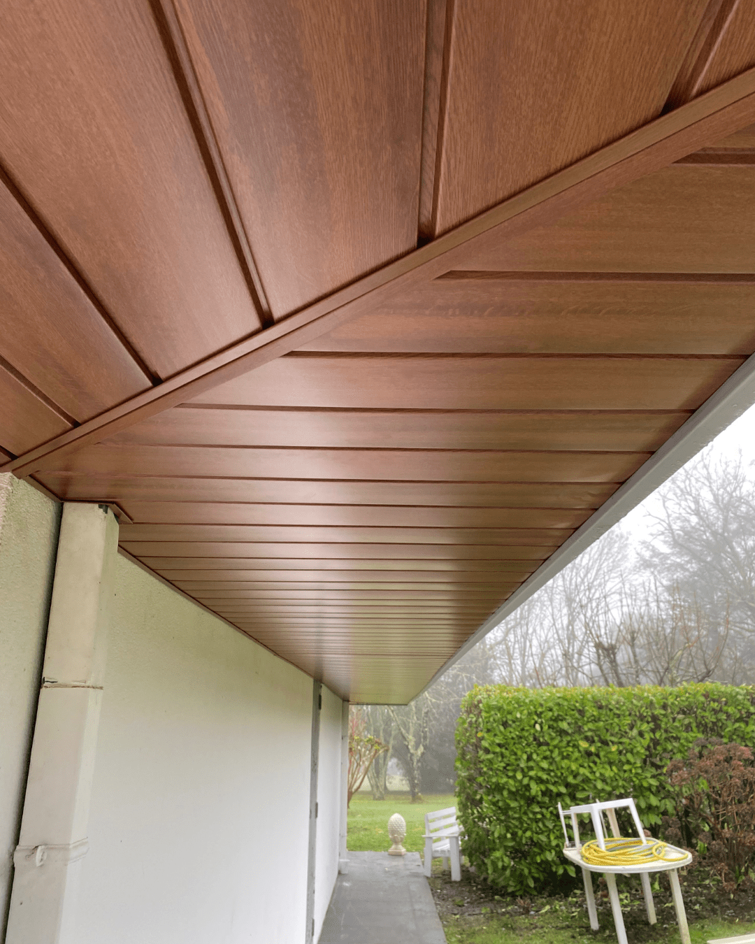 Cette rénovation redonne fiabilité, propreté et longévité à l’ensemble de l’avancée de toiture, avec des matériaux durables et sans entretien.