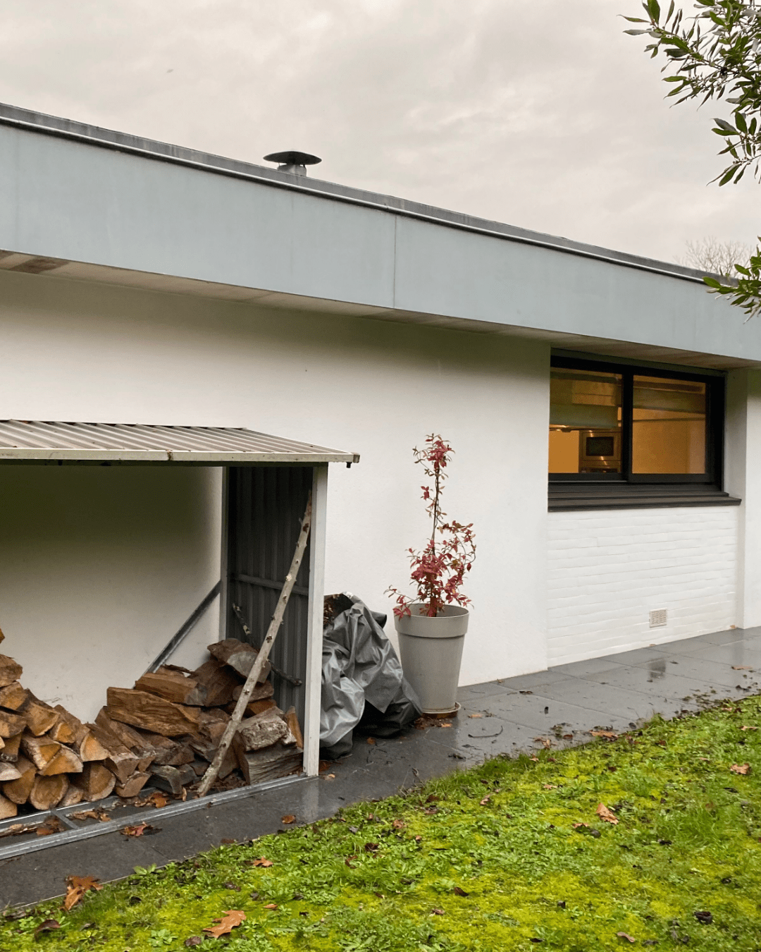Sous les avant-toits, un lambris de sous-face en aluminium laqué Chêne doré a été installé pour apporter un rendu soigné, lumineux et chaleureux.