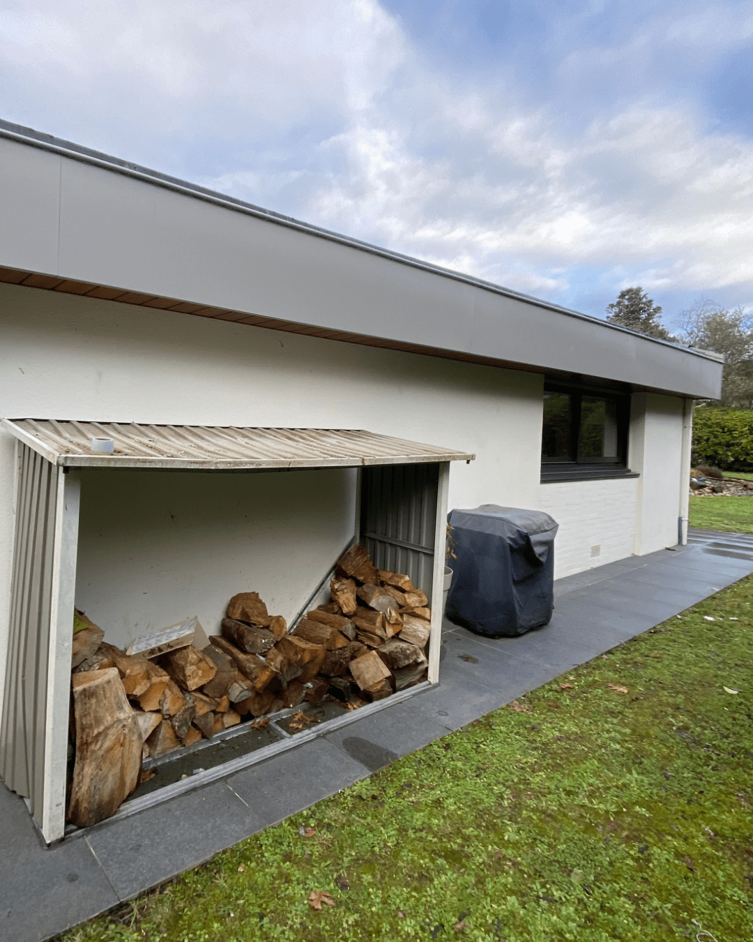 Les bandeaux bois dégradés ont été remplacés puis entièrement habillés en aluminium laqué Perlegrise, afin de garantir une protection durable et une finition nette.