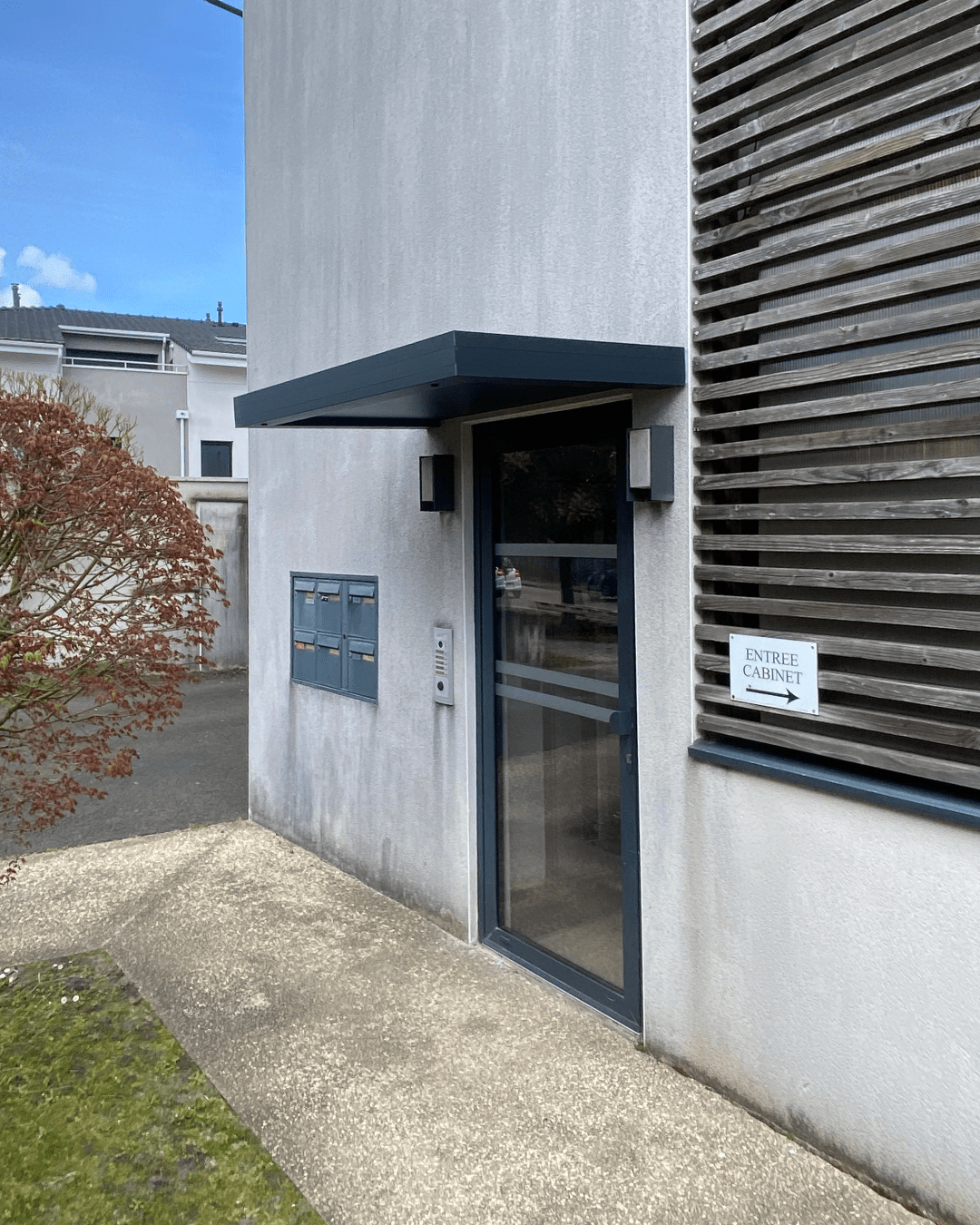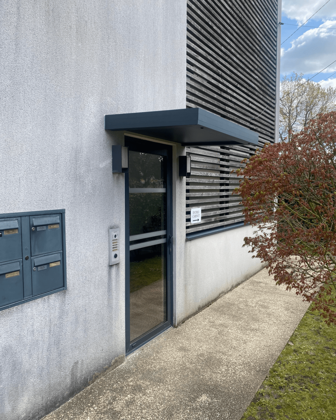 Elle protège efficacement des intempéries tout en valorisant l’accès au bâtiment.